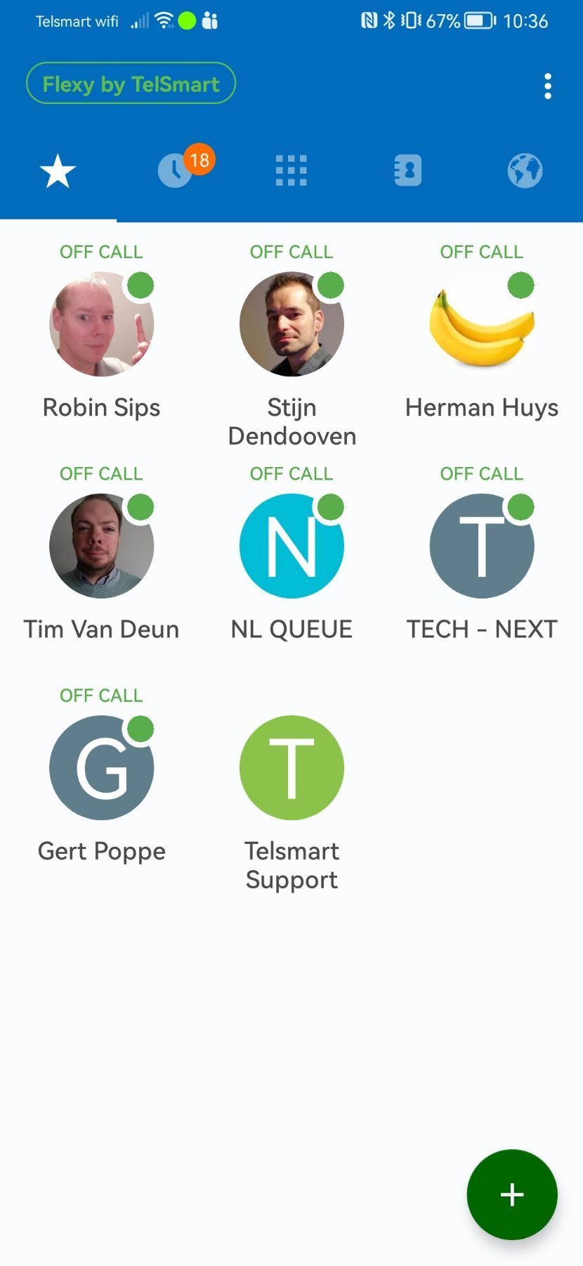 7. Nous pouvons maintenant voir le numéro interne ainsi que la disponibilité (vert = disponible, rouge = occupé).
