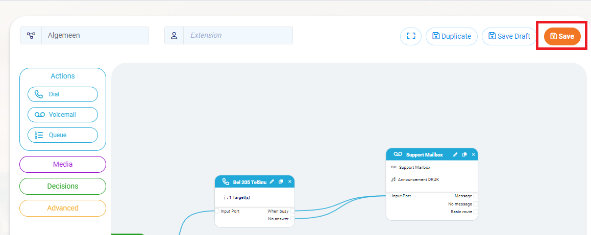 Volg de stappen hieronder om de Voicemail te gaan toevoegen in het belproces.
